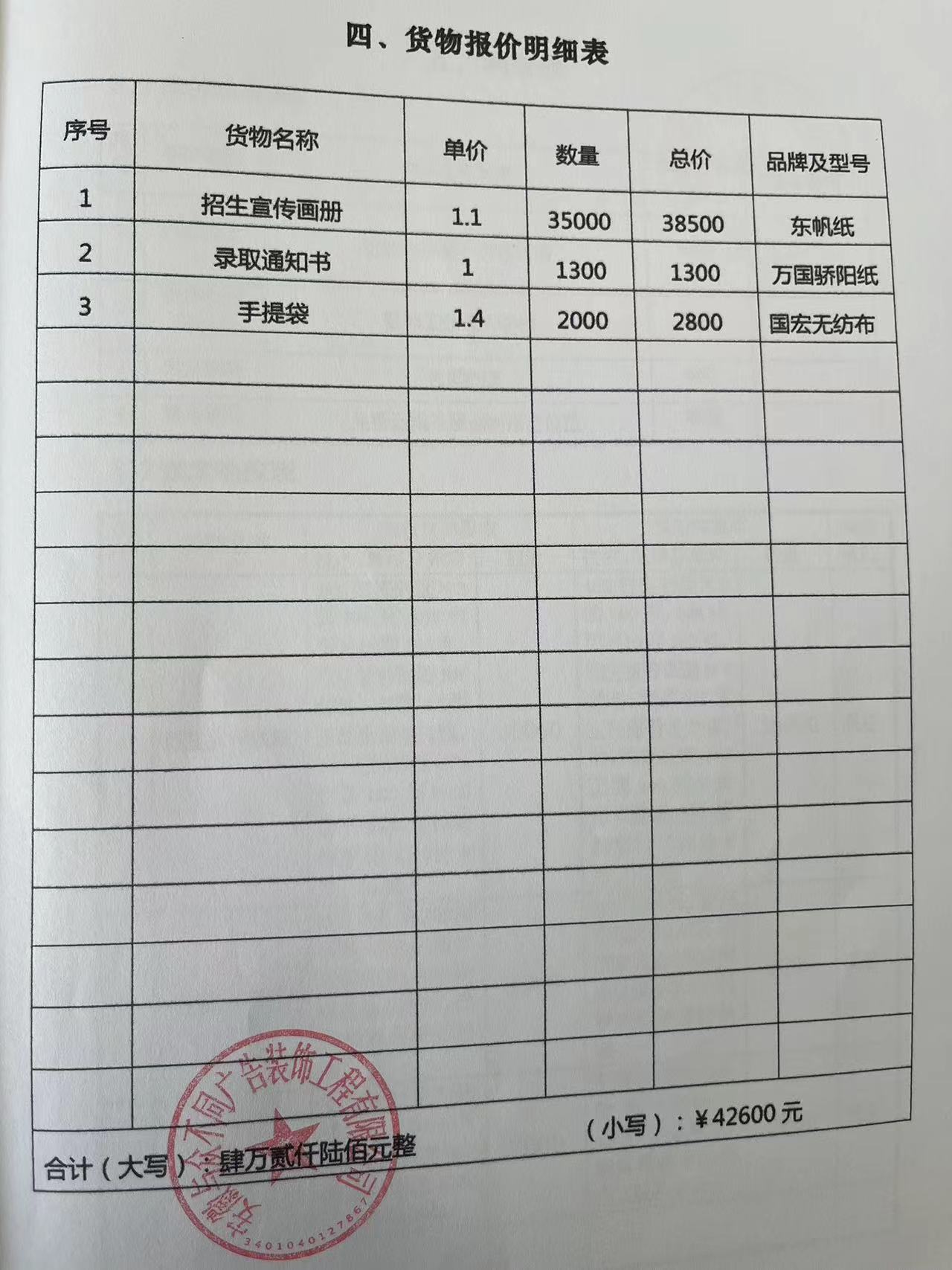 阜阳工业经济学校招生简章画册、录取通知书及手提袋采购项目中标公示[中标公告]