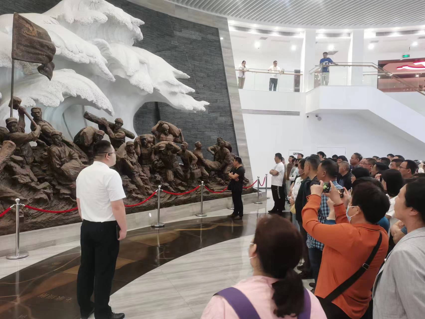 5月16日下午,成教科工作人员带着参训学员一起来到了阜南县王家坝,旨在让学员们感受“王家坝精神”。在引领员的带领下,我们经过了印象序厅、千里淮河·沧桑蒙洼、顾全大局·人民至上、自强不息·百折不挠、同舟共济·风雨战歌、科学治水·丰碑长存、牢记嘱托·再展担当、魅力阜南·滨淮花园八个展厅。引领员用生动的话语,以淮河治理和防汛抗洪等重大历史事件为背景,以弘扬王家坝精神为主线,为我们诠释了王家坝精神的时代价值和科学内涵。