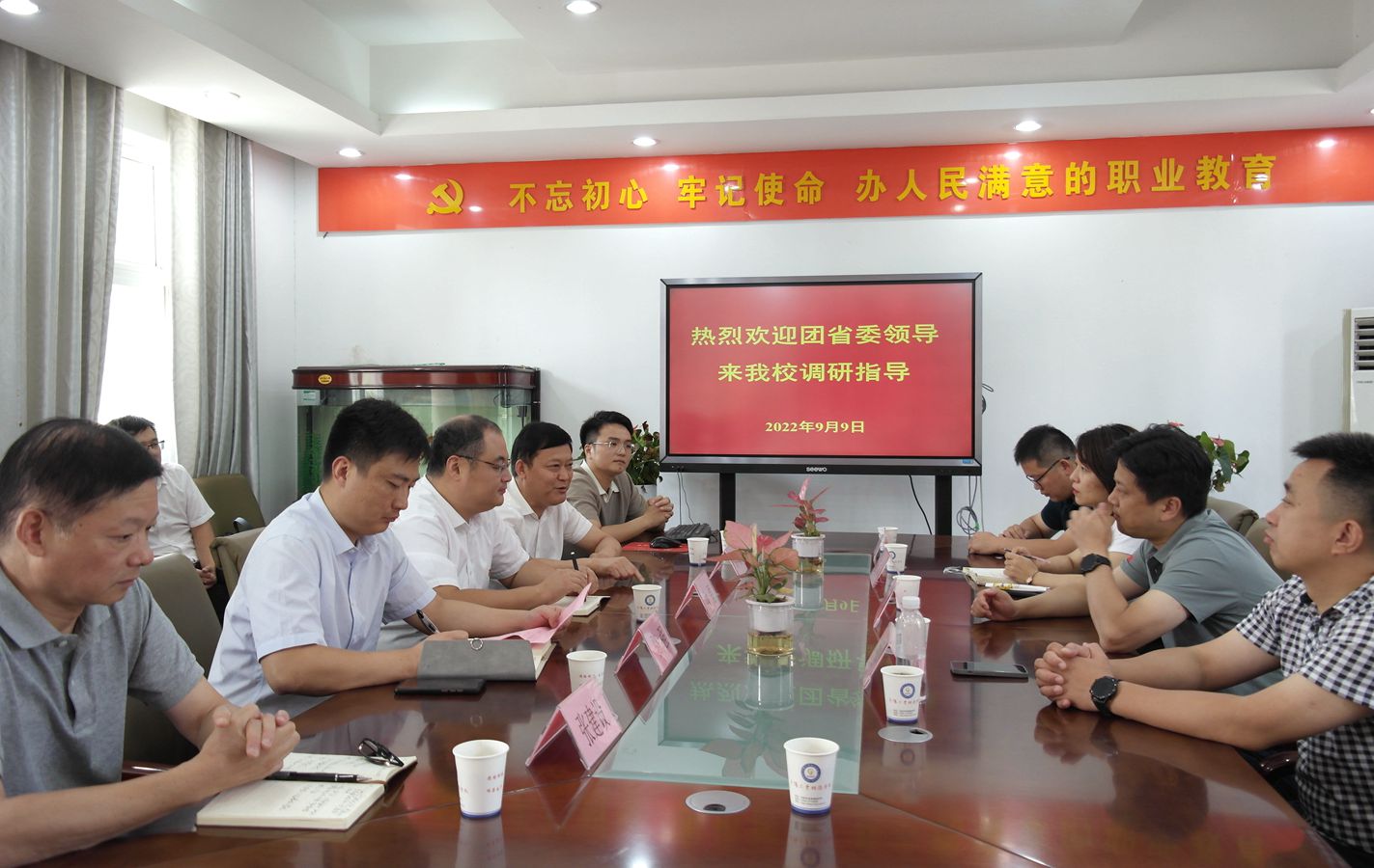 9月9日上午,团省委学校部部长邹永生,副部长张国栋一行来我校调研。团市委书记汝磊、副书记骆强陪同调研。邹部长一行首先在二楼会议室开展了座谈会,听取了校党委书记、校长周波关于学校发展和校园文化建设的介绍以及团委王劭钦老师对我校的团建工作、社团活动、志愿者活动、团员发展、智慧团建等方面工作的详细汇报。随后,邹部长一行参观了我校实训车间,听取了车间实训老师的详细介绍,询问了学生的就业方向以及当下学习的情况。
