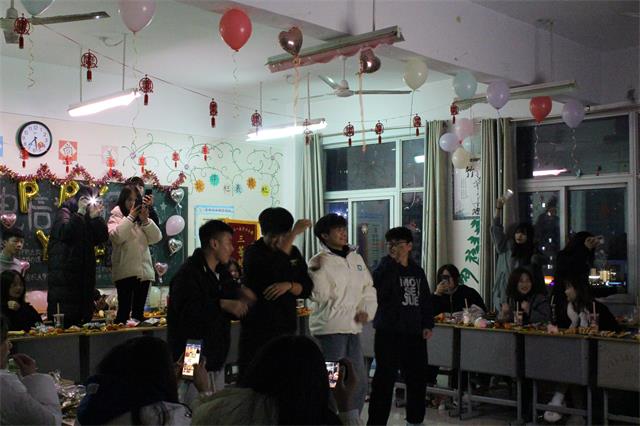 彩灯、彩条、气球、横幅……各班精心准备,同学们把自己的“家”装扮一新,处处洋溢着节日的气氛,呈现出新年的气息。晚会均由各班学生自己精心组织、排练,并由学生自主开展。各班同学们认真准备节目,热情高涨,充分发挥自己的特长,表演自己最拿手的节目。班级里充满着同学们的欢声笑语,节目形式多种多样,内容丰富多彩。