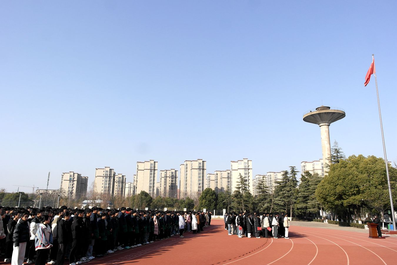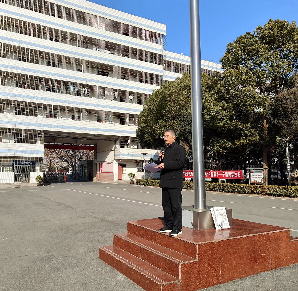 升旗仪式上,两校区学生代表分别进行了宣讲,倡议广大学子要锚定学习目标,认真复习备考,提高学习效率,保持良好的作息规律,以最佳状态迎接每一科目的测试。并强调了寒假期间广大师生要加强锻炼、修养身心,要注意交通安全、饮食安全、居家安全、网络安全和提高自我保护意识等,坚决杜绝任何不安全事件的发生。