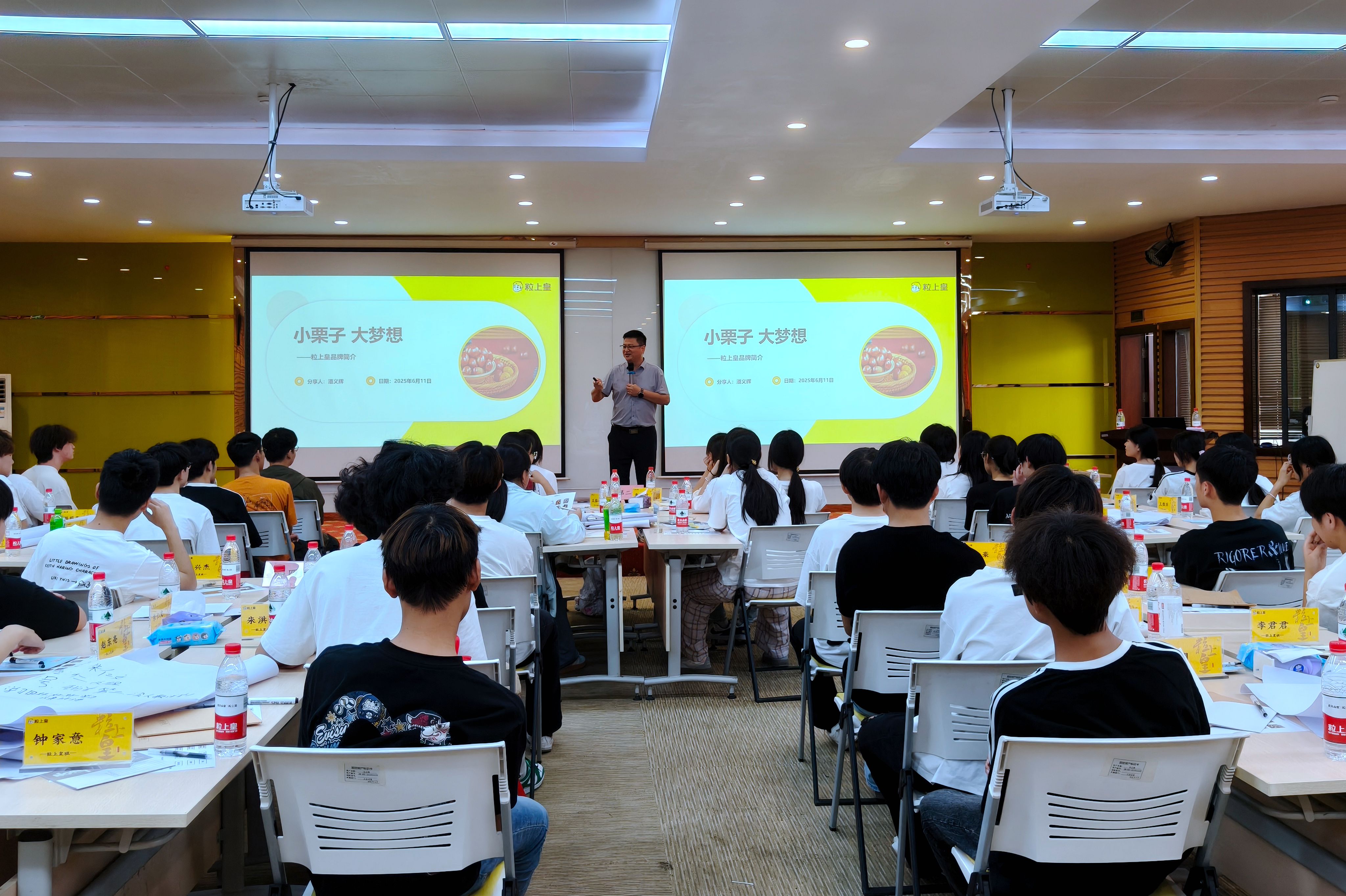 6月11日,企业讲师潘义辉以“小栗子”为切入点,从品牌文化、经营理念出发,通过《小栗子大梦想》课程为学生系统解析了粒上皇“从一颗板栗到产业链运营”的商业逻辑。6月12日,教学内容进一步深化,学生不仅走进工厂车间与门店进行实地参观,还通过《板栗&山楂知多少》课程深入学习核心产品的生长特性与贮藏技术。最后以《一路似锦的成长之旅》优秀员工分享会激励学生树立职业目标,努力学好文化课,练就兴业本领。