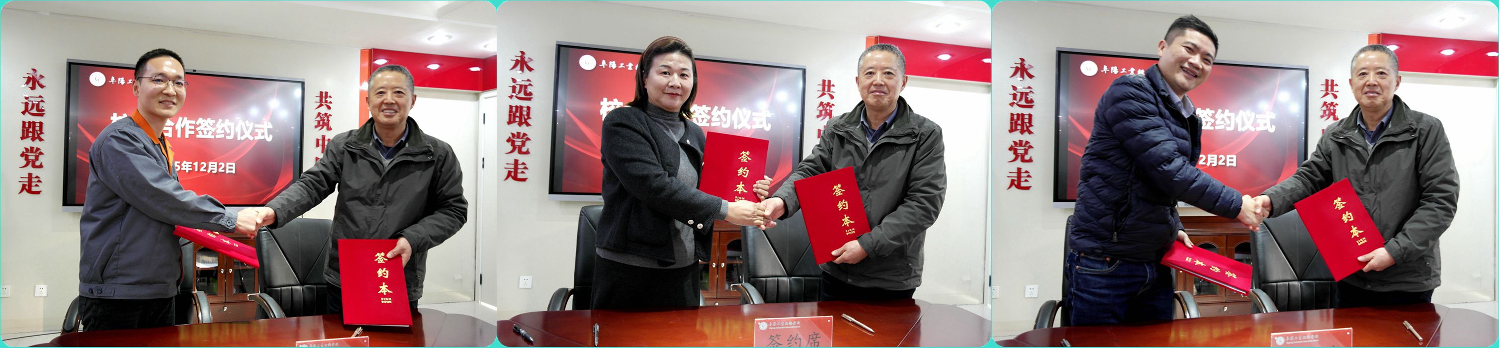 12月2日,阜阳工业经济学校与阜合现代产业园3家重点企业——安徽铂川智联科技有限公司、阜阳比克希汽车科技有限公司、安徽磐石增材智能科技有限公司校企合作签约仪式顺利举行。阜合现代产业园人事劳动局副局长程丽君,园区企业代表,校党委委员王先义及学校相关科处室负责人出席活动。本次活动依次开展现场签约、交流座谈、实训车间参观等环节,校党委书记陈颍峰主持活动。