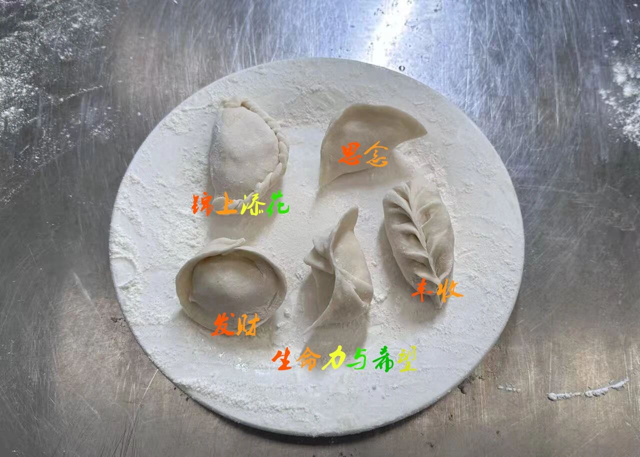 同学们更是大显身手,展示了五种各具寓意的饺子包法:麦穗代表丰收、元宝代表发财、花边代表锦上添花、柳叶代表生命力与希望、信封则代表着思念,每一种包法都承载着对家人的心意与吉祥祝福。