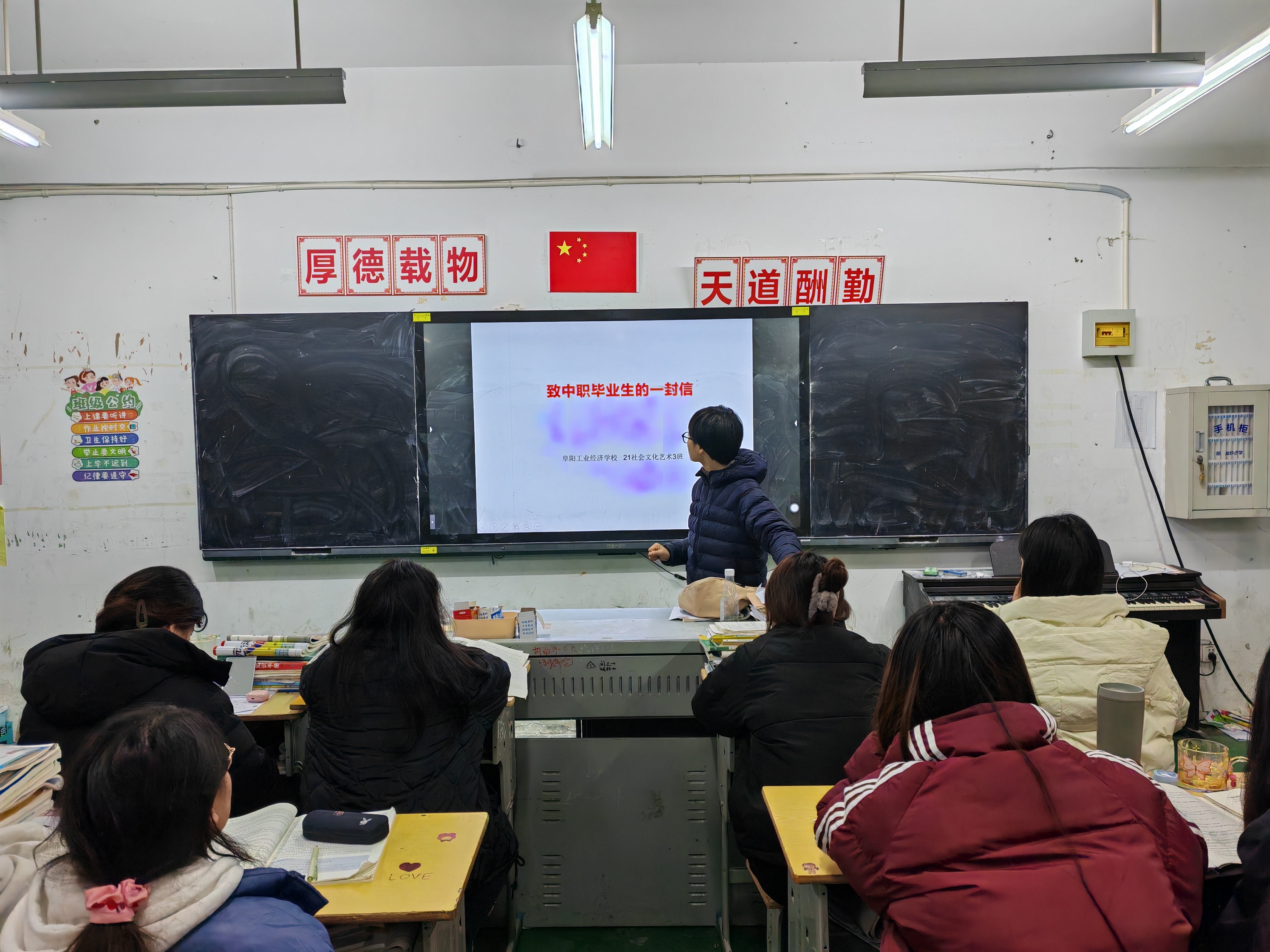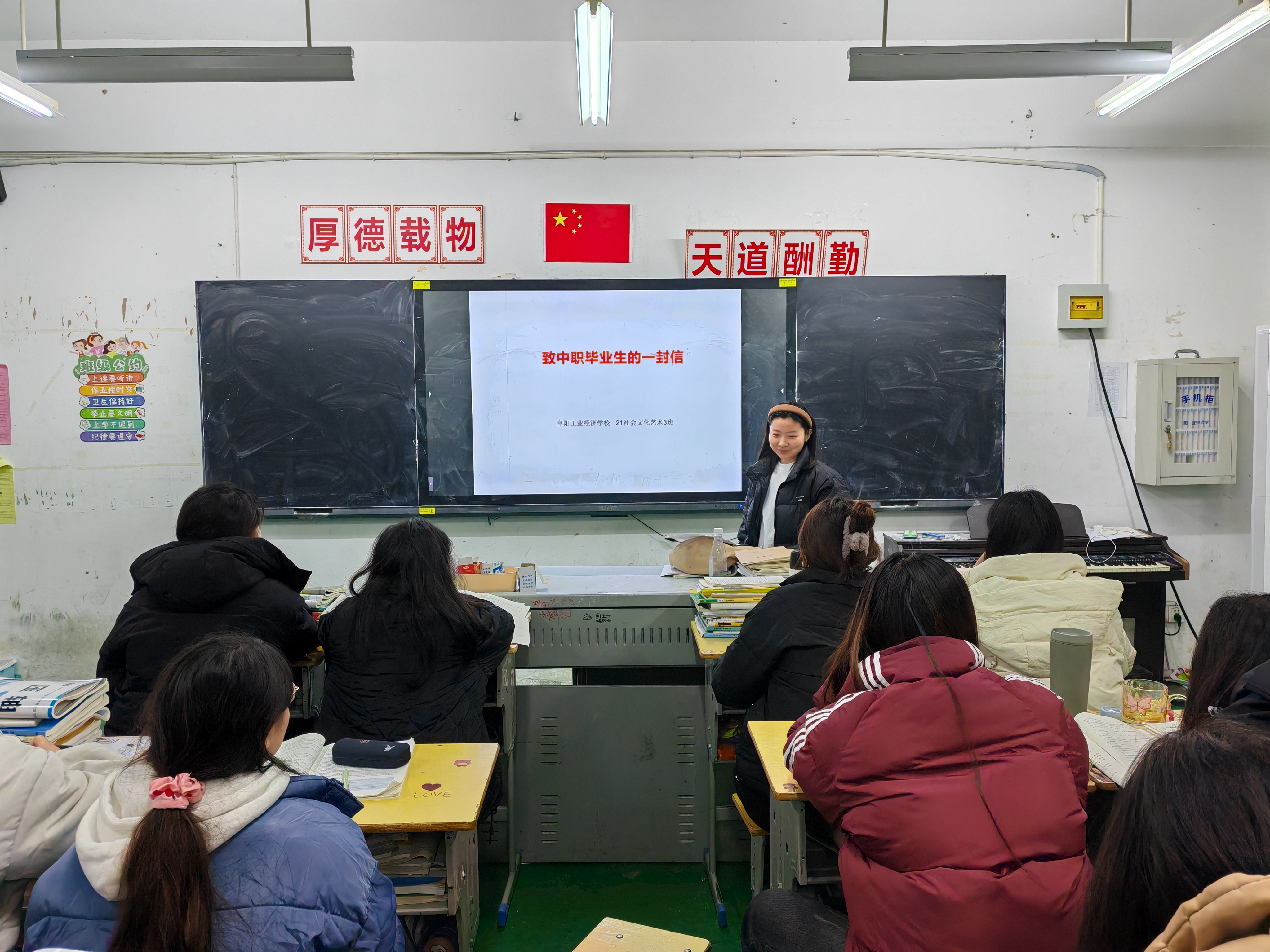 阜阳工业经济学校开展“致中职毕业生的一封信”主题班会活动