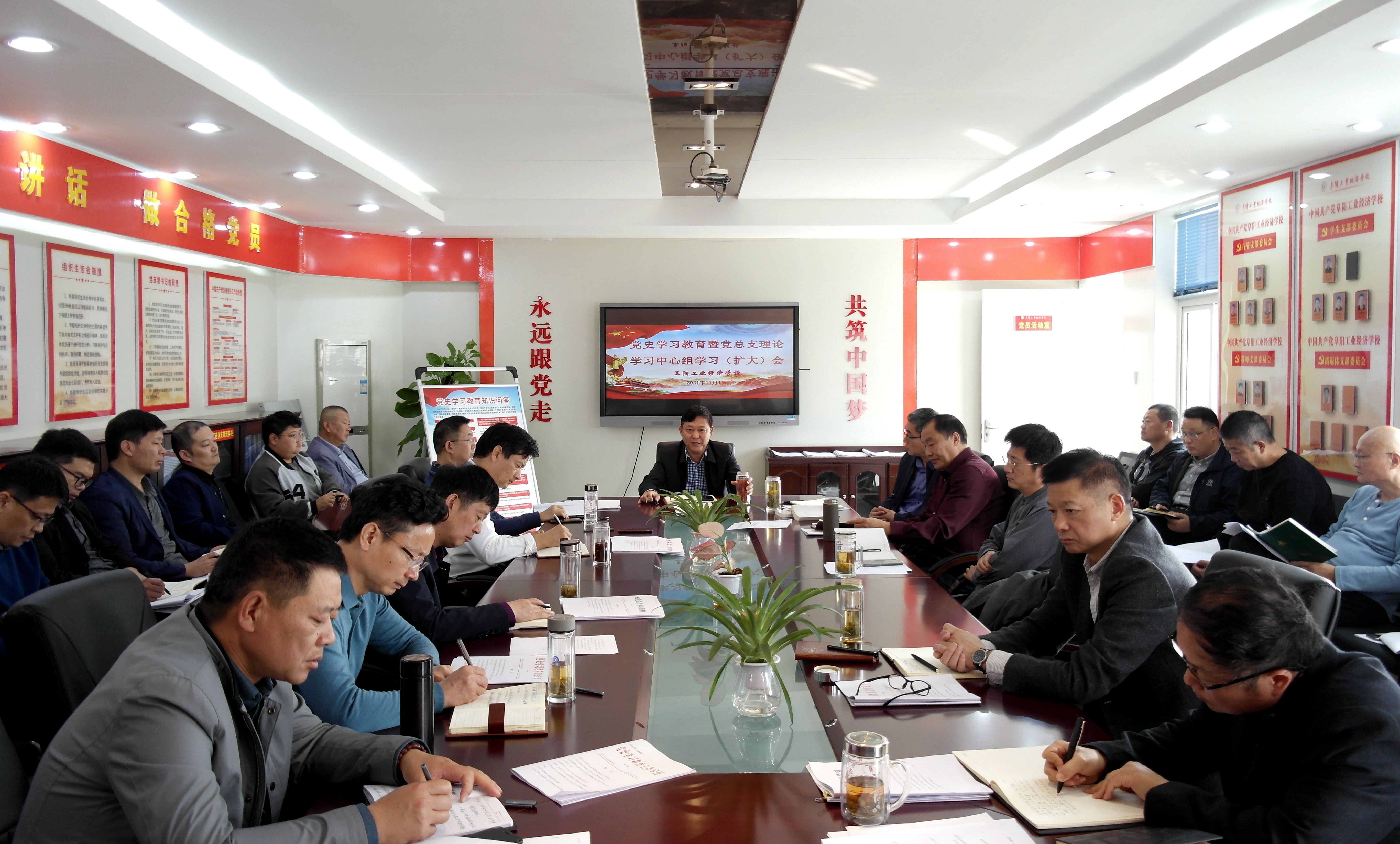 11月1日,阜阳工业经济学校召开党史学习教育专题学习会暨党总支理论学习中心组学习(扩大)会。校班子成员、各科室负责人参加会议。会议由校党委书记、校长周波主持。