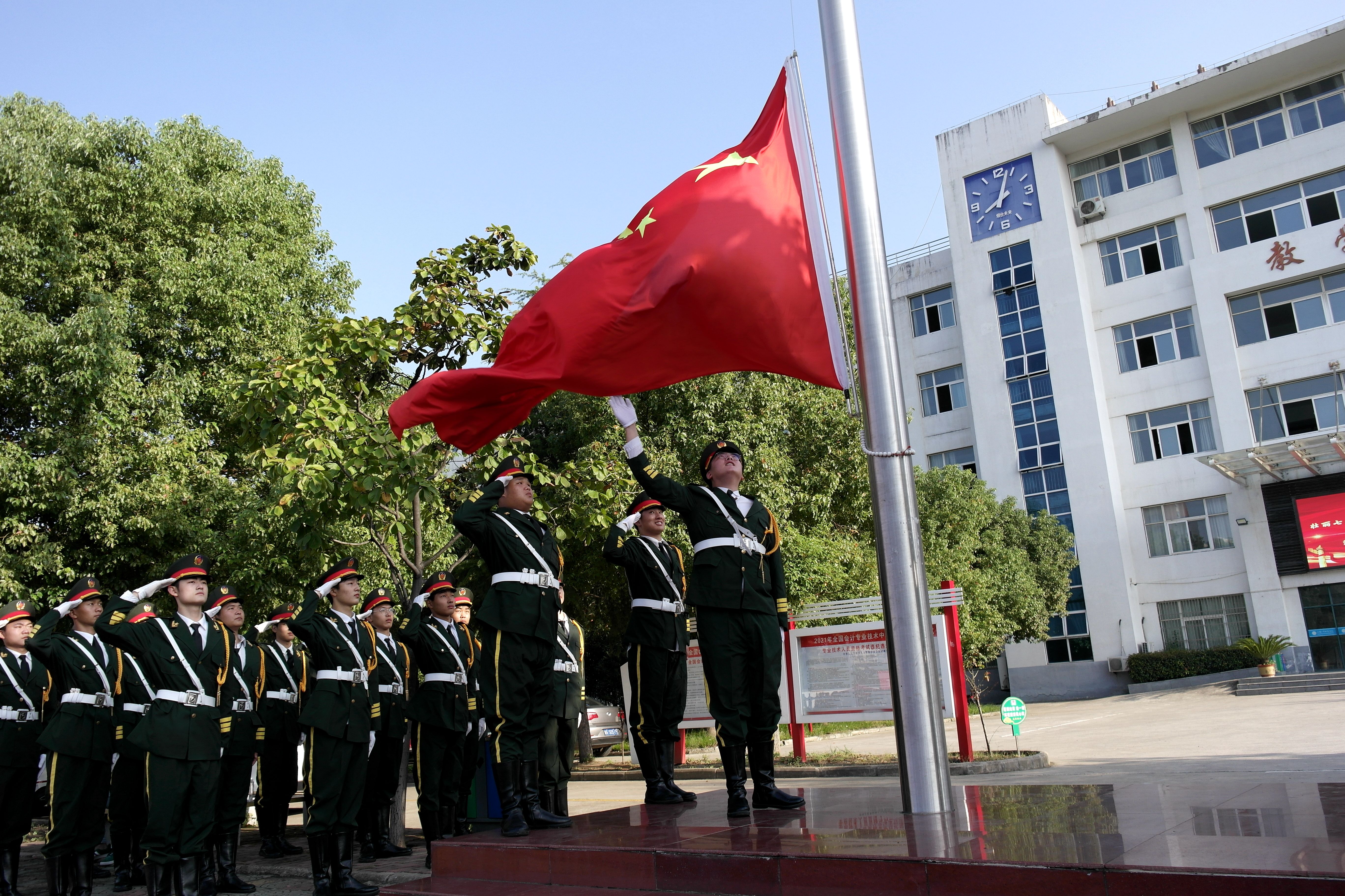 阜阳工业经济学校开展“请党放心、强国有我”升旗仪式