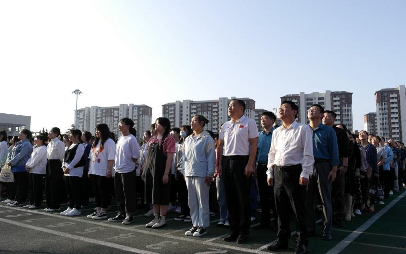 随后全体师生怀着对祖国的热爱,饱含深情同唱国歌,注视国旗冉冉升起。校微宣讲团成员丁清霜作了国旗下的“礼赞新中国 奋进新时代”主体宣讲,并联系学习党史和学习经历,激发同学们要以实现中华民族伟大复兴为已任,增强做中国人的志气、骨气、底气,不辜负党和人民的殷切希望。