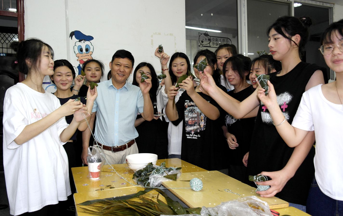 端午佳节,金粽飘香。6月3日,在端午到来之际,为了传承中华传统文化,弘扬爱国精神,激发学生劳动的热情,阜阳工业经济学校俩校区各班级开展了“端午 · 我们的节日”端午节包粽子活动。校党委书记、校长周波携相关科室负责人与师生们欢聚一堂,一起包粽子,共话端午情。