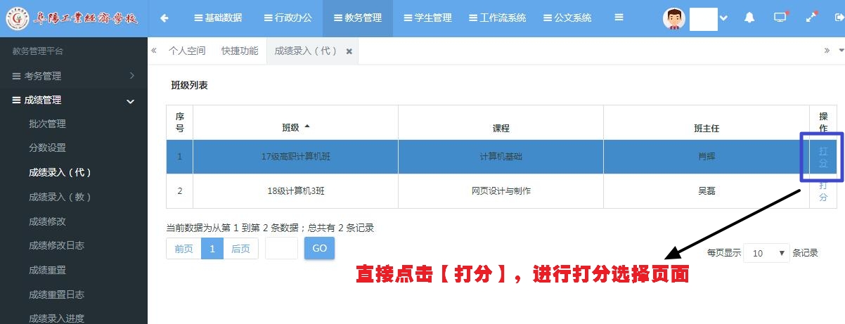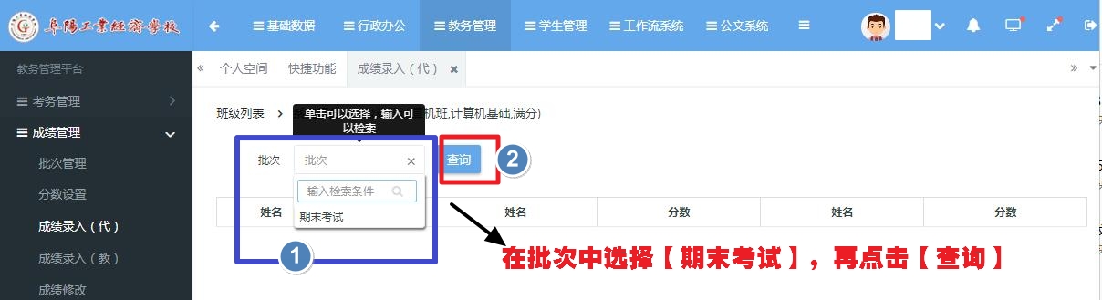 阜阳工业经济学校成绩录入操作方法
