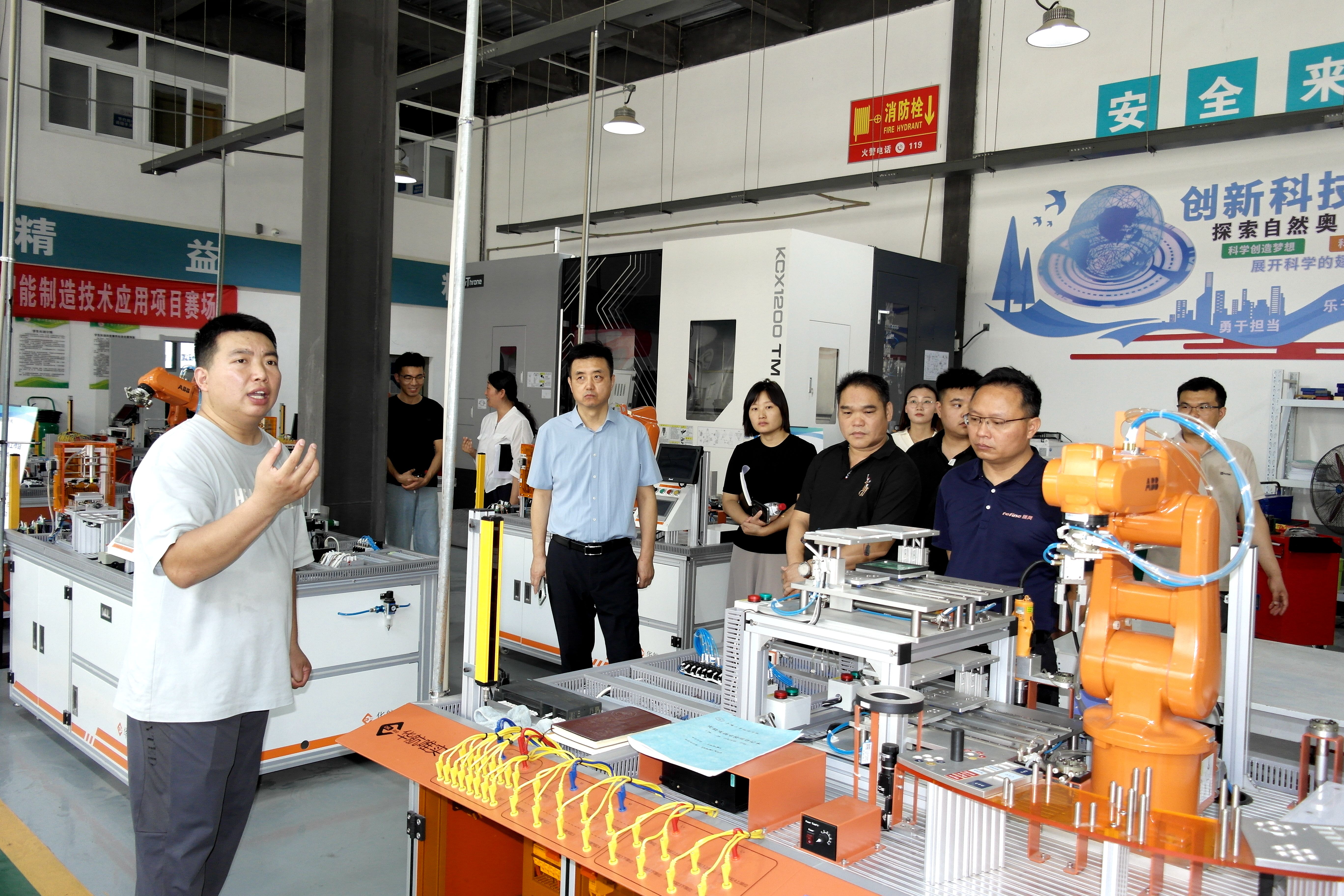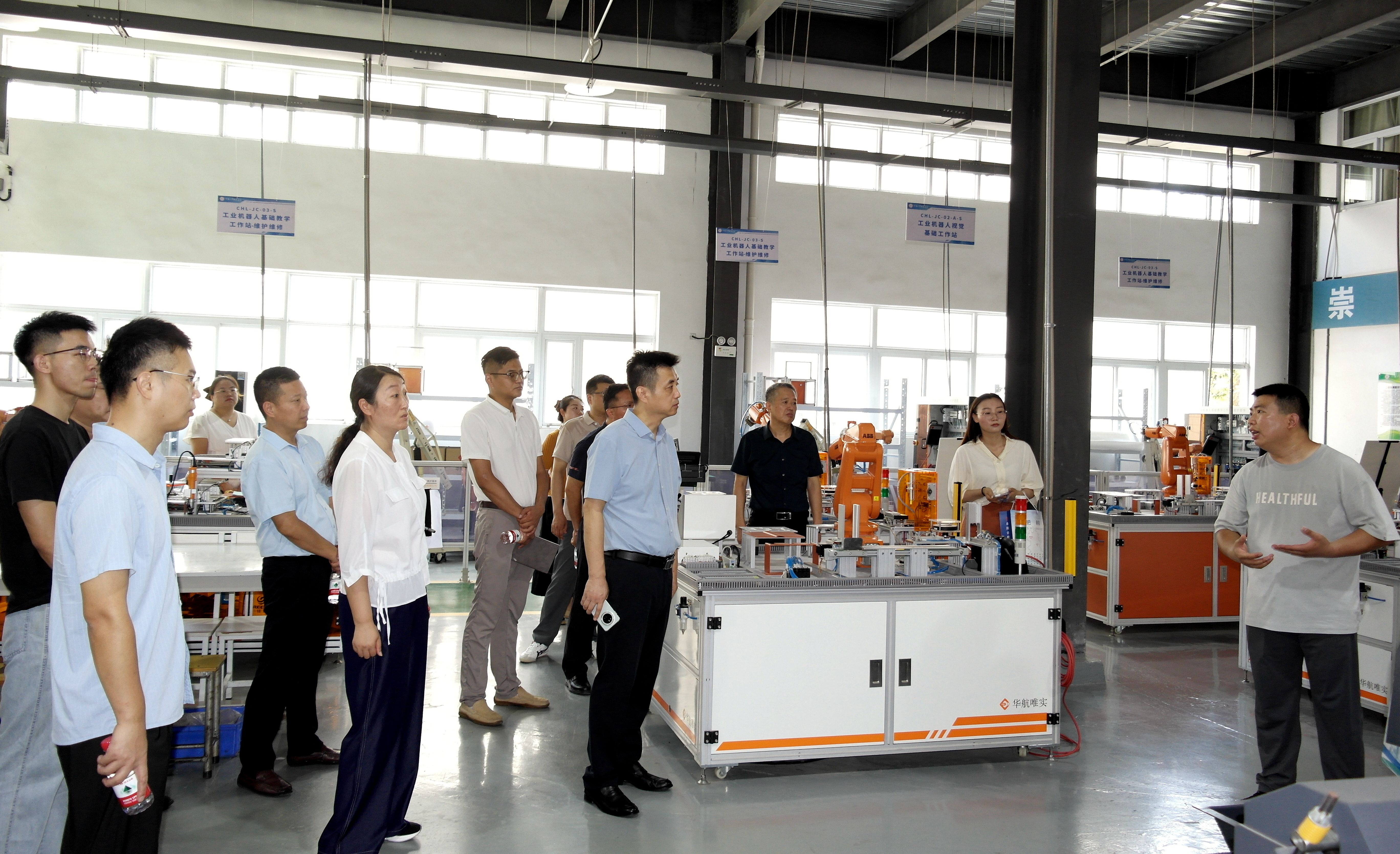 何艳局长一行在我校领导的陪同下,先对数控、汽修、机器人、财会等重点专业实训室进行实地参观。现场观摩实训设备的配置与运行情况,详细询问了教师实训课程的安排与开展效果,并结合自身企业的发展需求和行业人才标准,对我校的人才培养、课程优化、实践教学等方面提出了宝贵建议。​