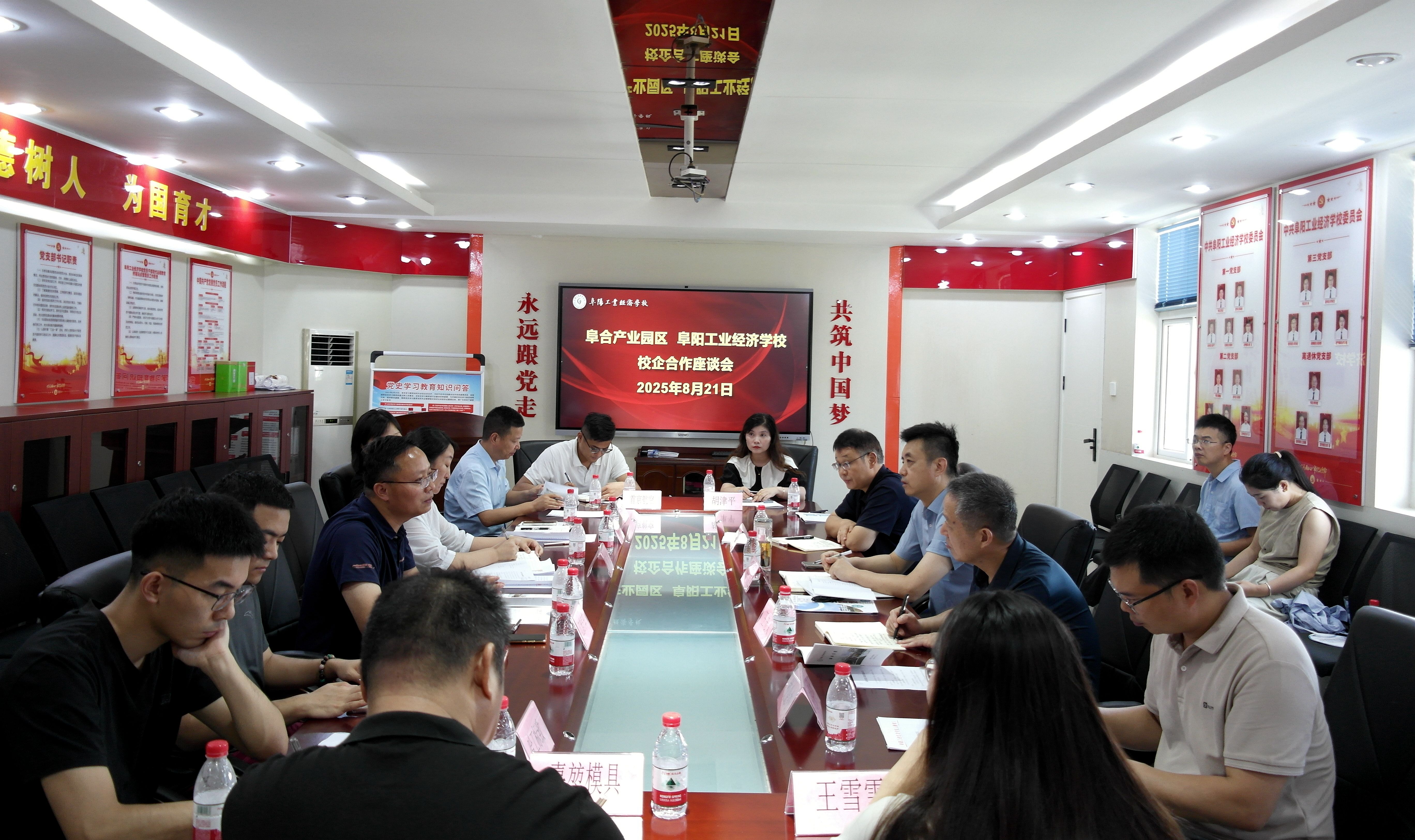8月21日,阜合产业园区与阜阳工业经济学校举行校企合作座谈会。园区管委会人事劳动局局长何艳,安徽哈工标致科技有限公司、安徽江淮汽车集团股份有限公司阜阳分公司、安徽华源之光能源科技有限公司等企业代表,以及我校校企办、教务科及相关专业组负责人共同参会。会议由校党委书记陈颍峰主持。​