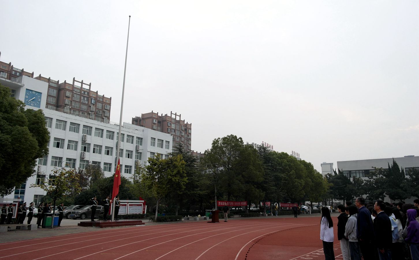 2024年11月9日是第33个全国消防日,为进一步加强校园消防宣传工作,切实提高师生消防安全意识和自防自救能力,11月4日早晨,阜阳工业经济学校两校区举行“普及消防知识 共筑平安校园”主题升旗仪式。学校领导班子成员、中层干部及全体师生参加活动。
