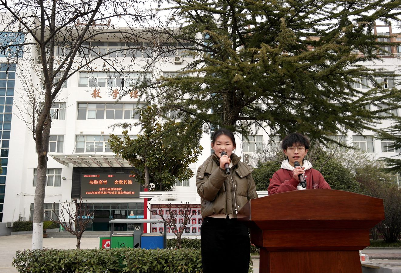 春光正好,梦想起航。2月17日早晨,阜阳工业经济学校两校区举行“决胜高考,舍我其谁!”主题升旗仪式。学校领导班子成员、中层干部及全体师生参加活动。