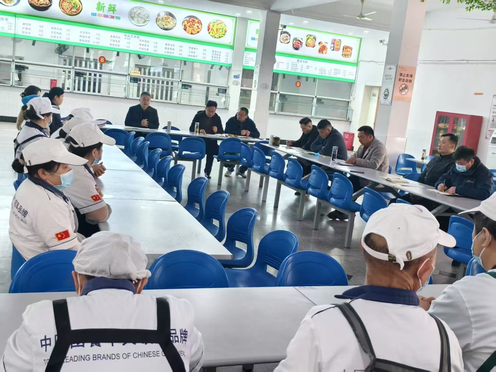 检查结束后,党委委员刘林在食堂主持召开现场办公会。两校区食堂负责人、食品总监、食安办工作人员及南校区食品从业人员参加会议。食安办主任隋闻虎首先学习传达了校园食品安全典型经验和相关负面案例。食堂经营负责人从采购、贮存、保质、清洁及工作人员持证上岗等方面汇报了安全工作开展情况,并表示将按照学校领导要求对发现的问题立即整改落实。