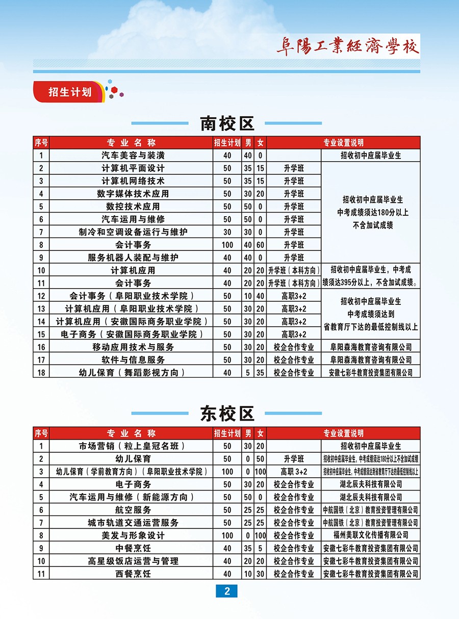 2022年阜阳工业经济学校招生简章