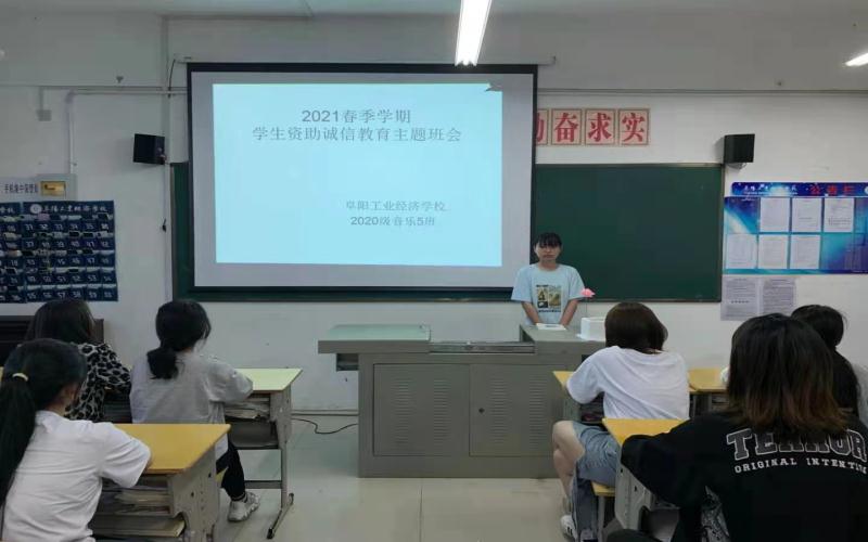 阜阳工业经济学校组织各班级学生开展“资助诚信”主题班会活动