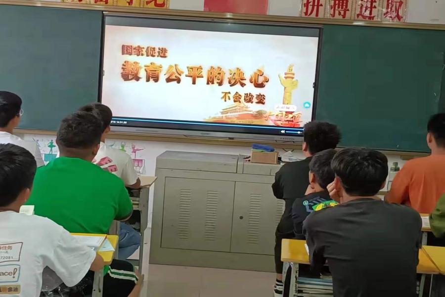 阜阳工业经济学校组织各班级学生观看“资助育人 .大国工匠进校园”活动