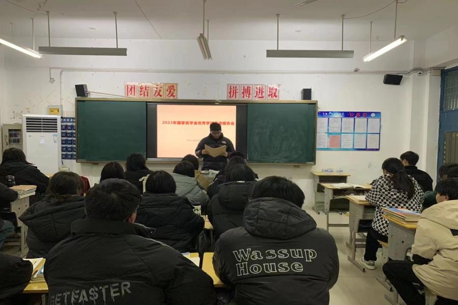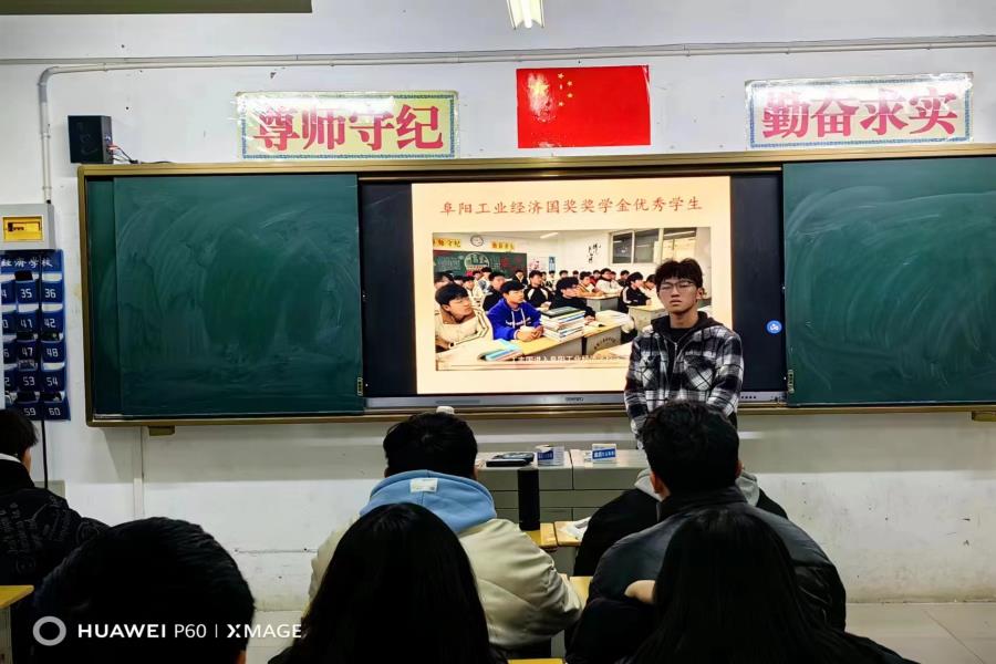 阜阳工业经济学校开展励志教育活动之--班级开展向国家奖学金优秀代表丁治国同学学习的活动