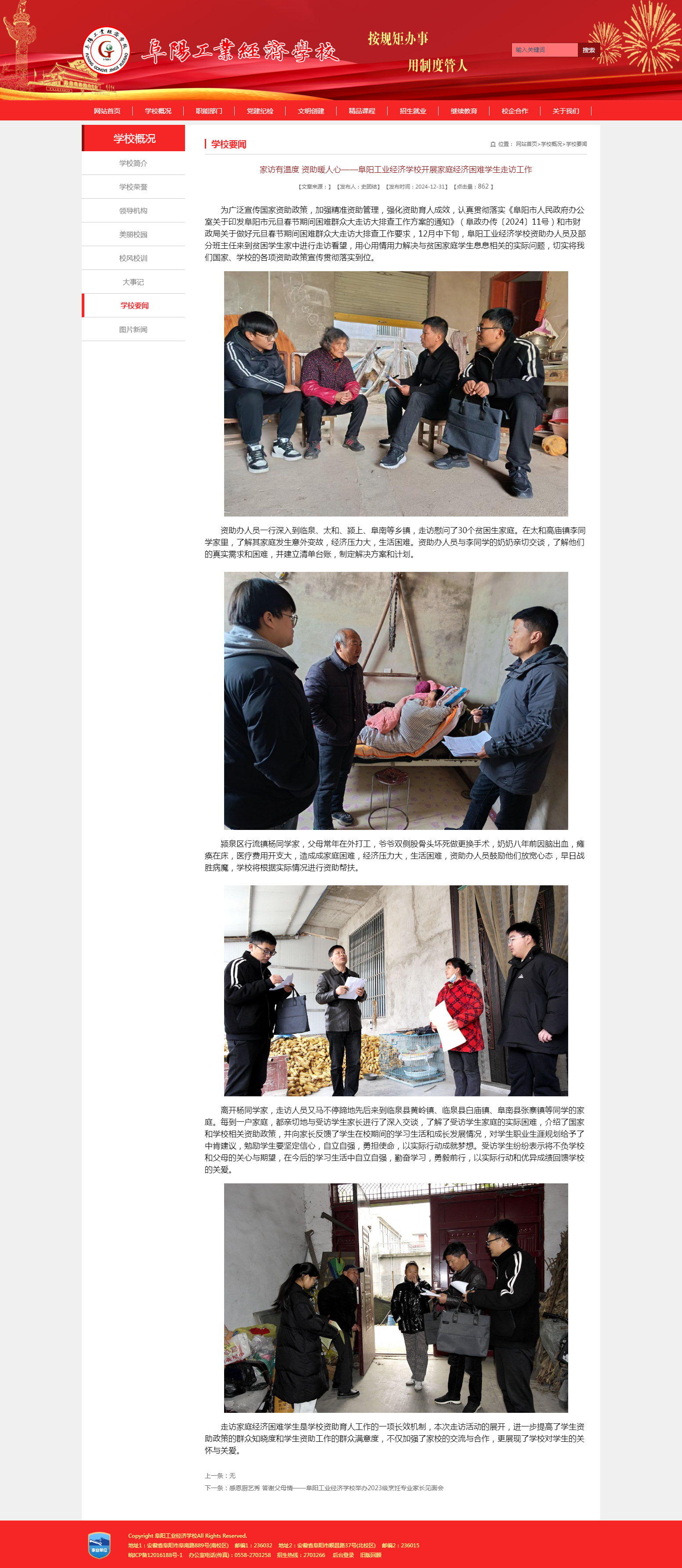 阜阳工业经济学校学校网站报道“阜阳工业经济学校开展‘冬季送温暖’资助慰问活动‘’