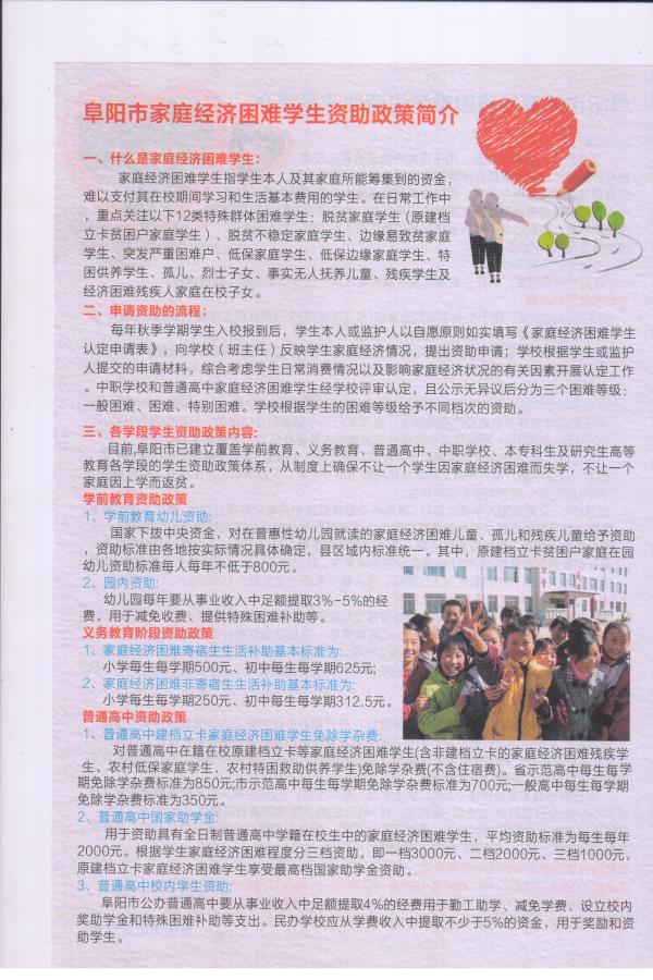 阜阳市家庭经济困难学生资助政策简介